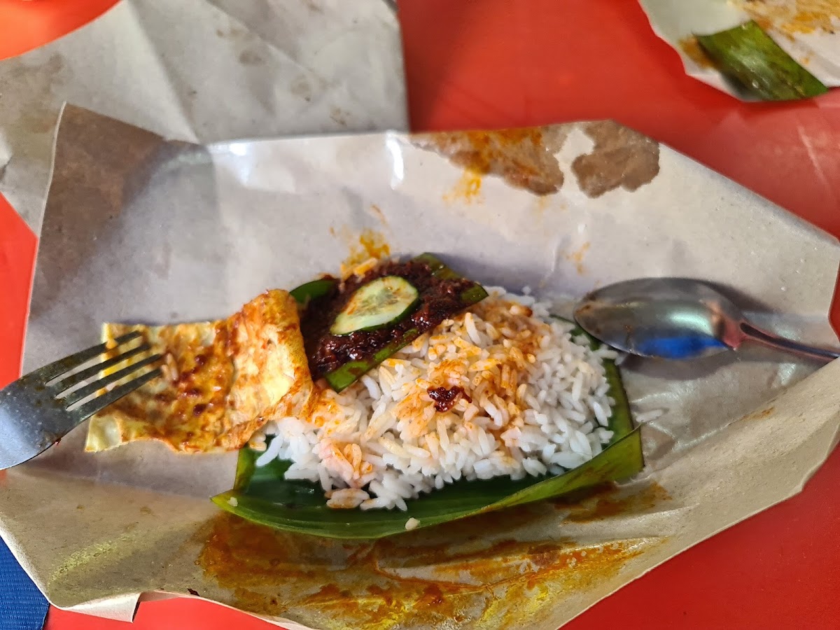 Kaya butter Toast + half-boiled egg very nice Nasi lemak also nice but a bit pricey (RM1.70)