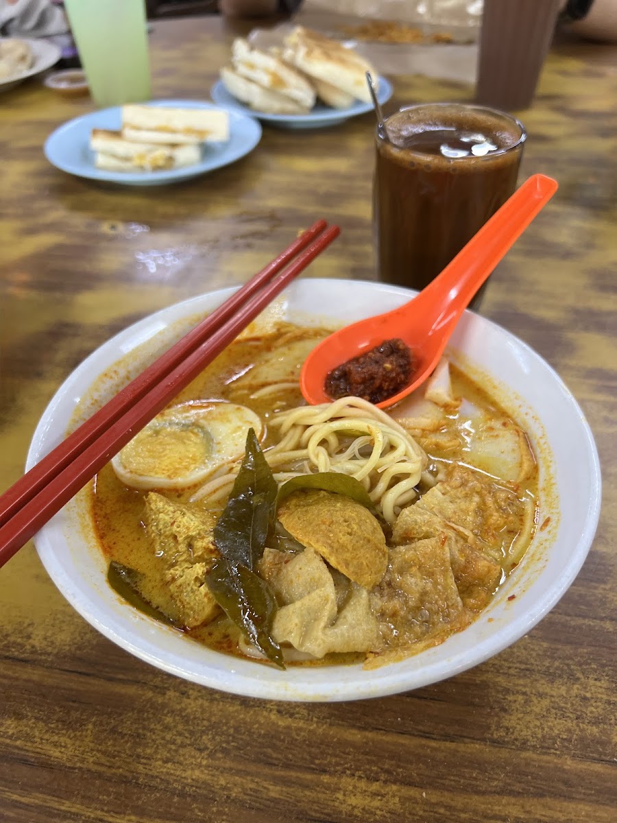 Easily the best breakfast spot we’ve had so far — clearly a local favourite! According to my friend who’s from Melaka town, folks from the town area usually don’t travel here for breakfast since they already have plenty of options. Still, this place was packed with locals from the surrounding area — always a good sign! We had the local toast and a small packet of nasi lemak. The kaya and butter spread on the toast was so generous that I actually had to scrape some off — a little too sweet for my taste, but still delicious if you have a sweet tooth. The nasi lemak came in a small paper packet, and to my surprise, it had kangkong in it — possibly a Melaka specialty? Definitely recommend this spot if you want to dine like the locals and escape the usual tourist crowd. Note: Payment is made only after all the food is served, and it’s cash only.